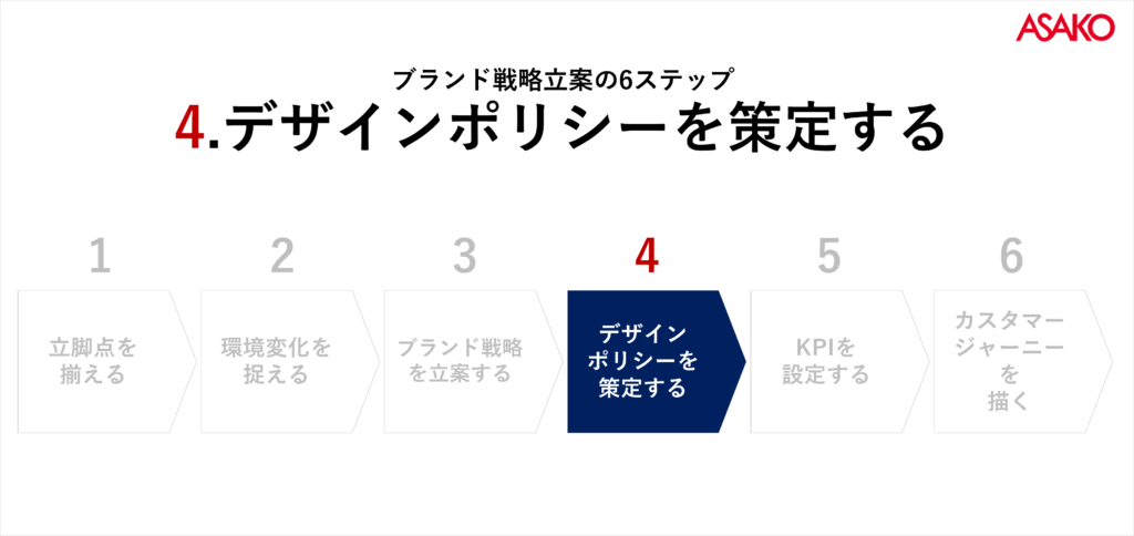 本記事で紹介した6つのステップ──①立脚点の共有、②環境変化の把握、③戦略策定、④デザインポリシーの整備、⑤評価指標の設定、⑥カスタマージャーニーの設計──は、ブランドを一貫性と持続性のある形で成長させるための実践的な枠組みです。