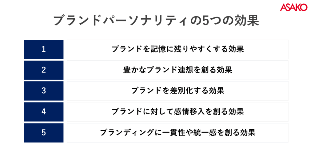 「ブランドパーソナリティがもたらす5つの効果