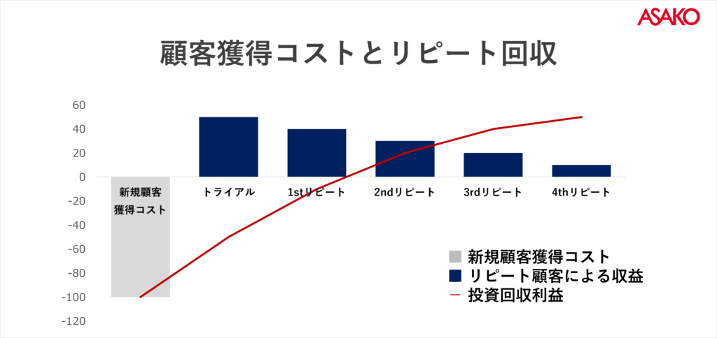 しかし、もしブランドロイヤリティがなければ、リピート顧客は容簡単に競合ブランドに流れてしまいます。その結果、先行投資は回収できず、事業は赤字に陥る可能性さえあるのです。
