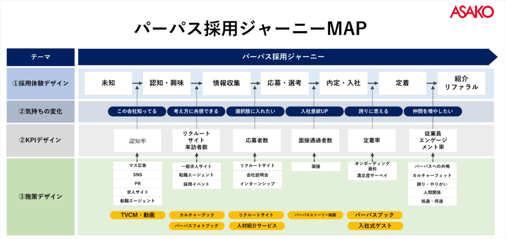 各接点で「私たちは何のために存在しているのか?」「なぜこの仕事をやるのか?」というパーパス視点を織り込むことで、求職者との深い共感を育てていくことができるのです。