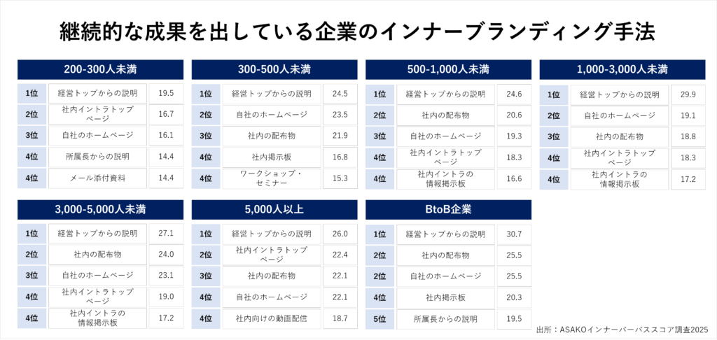 さらに、規模や業態を問わず共通して1位となった施策が、「経営トップからの直接発信」です。