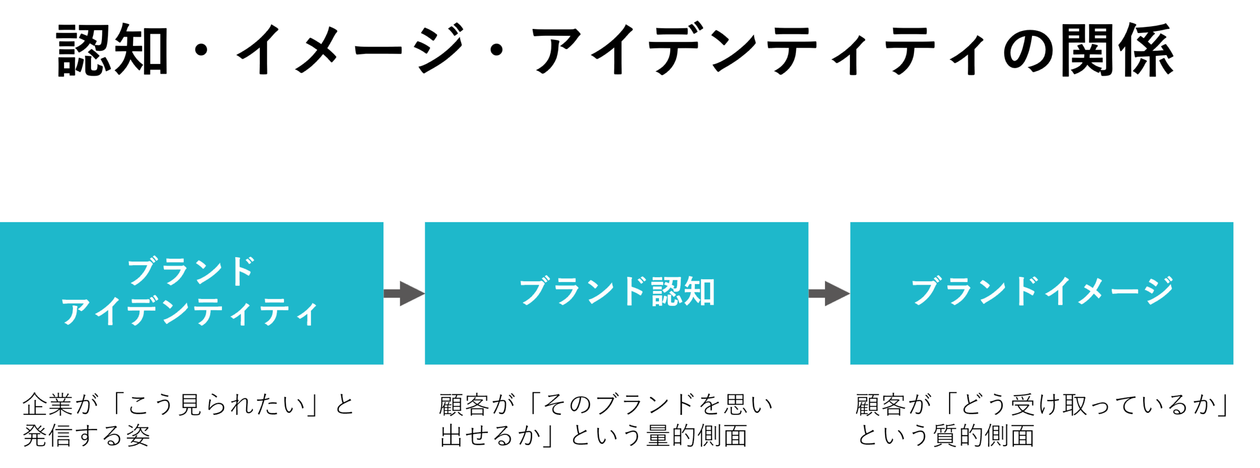 ここで整理しておきたいのが、認知・イメージ・アイデンティティの関係です。