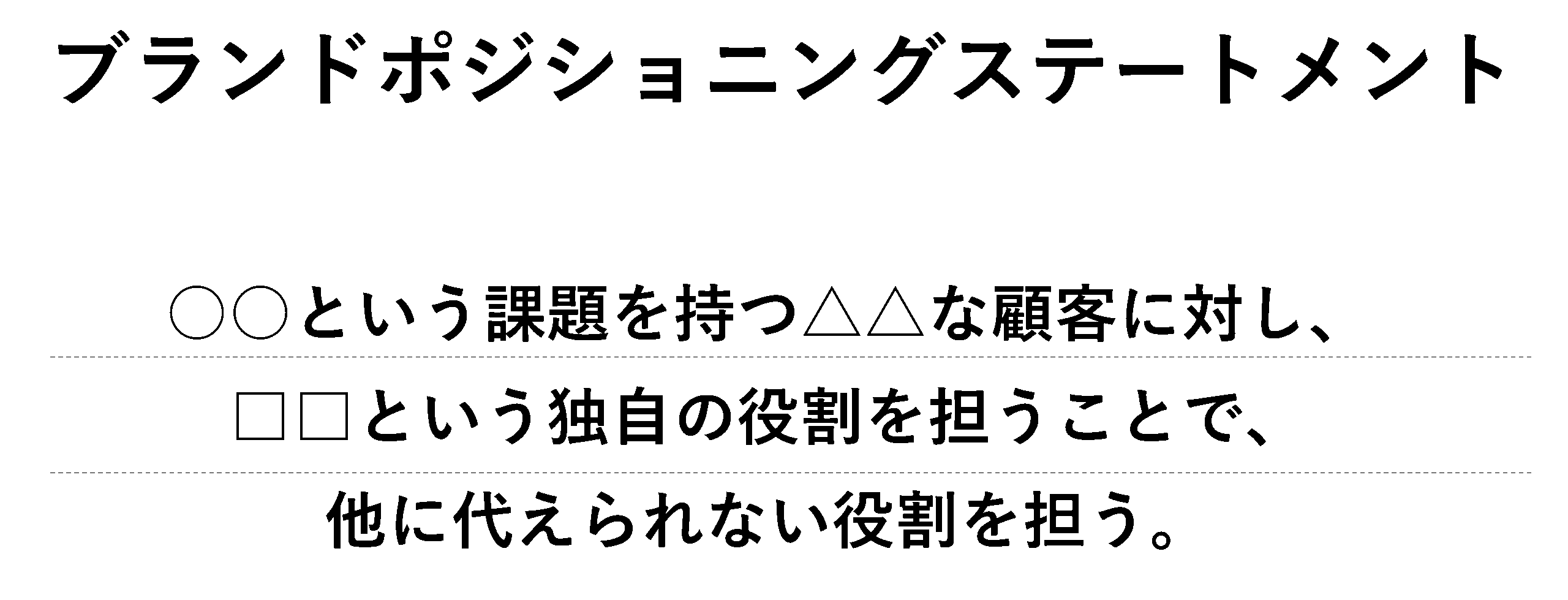 「○○という課題を持つ△△な顧客に対し、□□という独自の価値を提供することで、他には替えられない役割を担う」