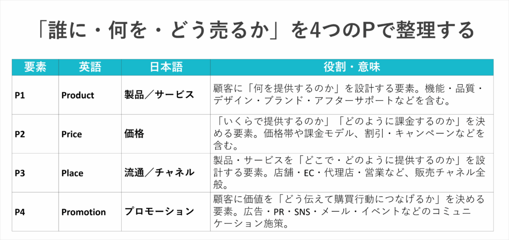 ③ 基本フレーム「4P」とは?|Product・Price・Place・Promotionの意味と設計ポイント