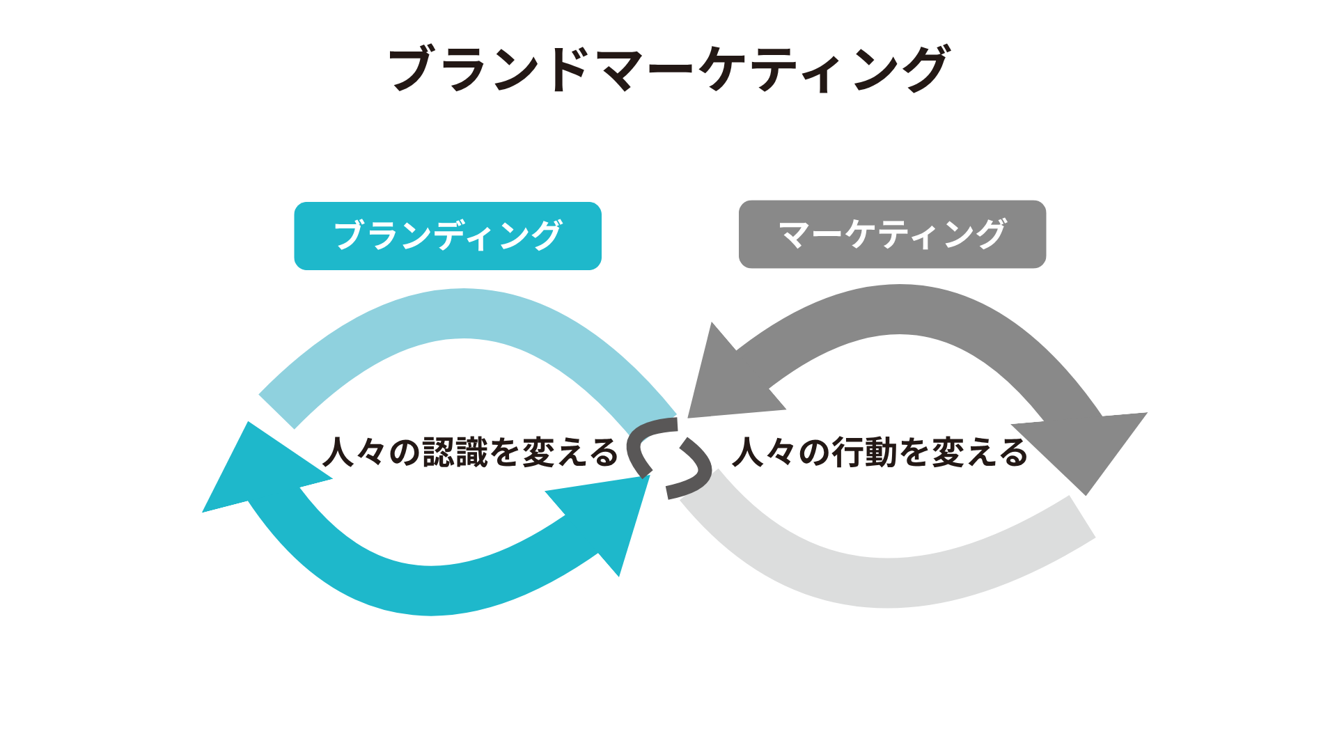 ブランディングが“認識”を形づくり、マーケティングがその認識の上で“行動”を生み出す。
