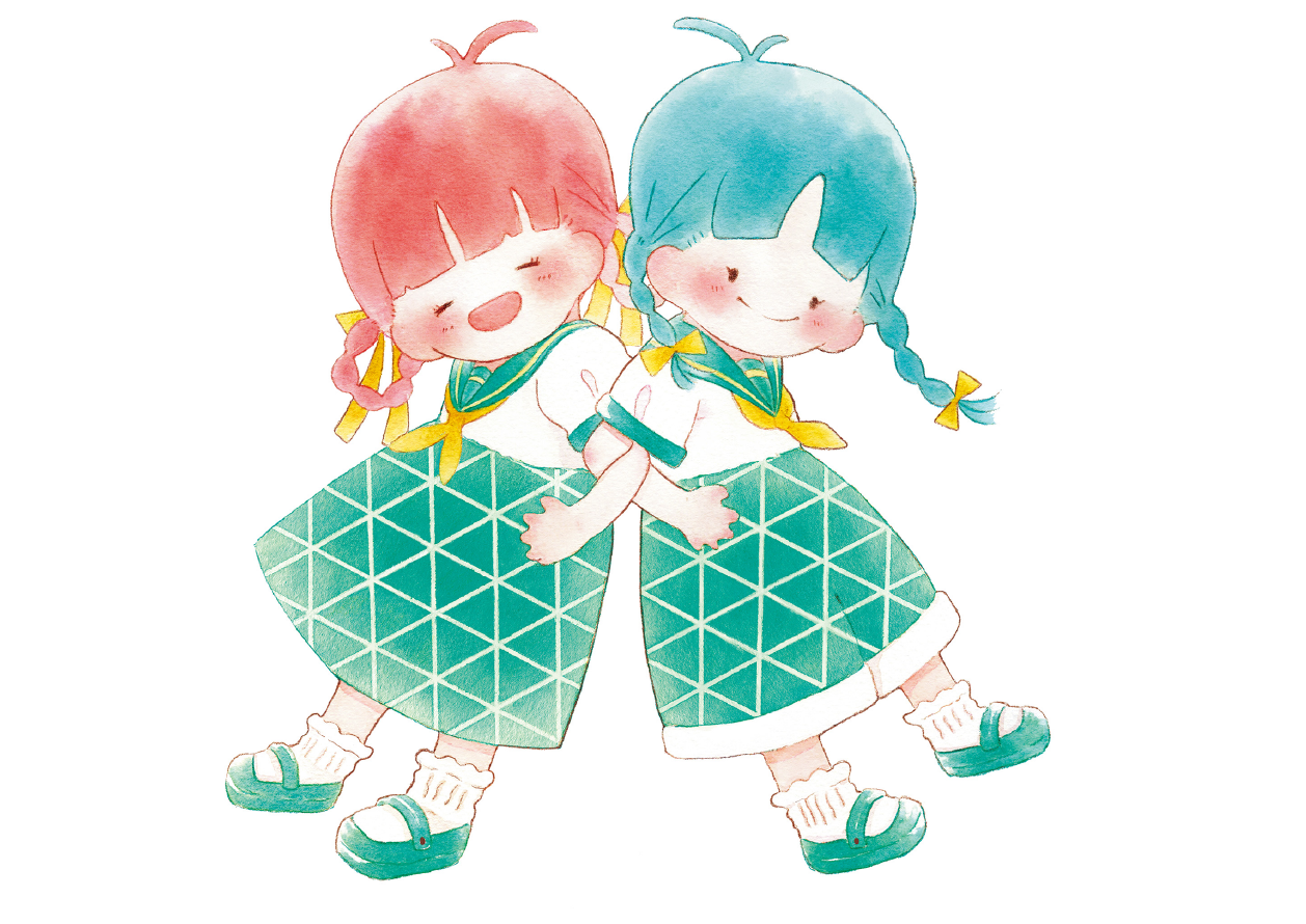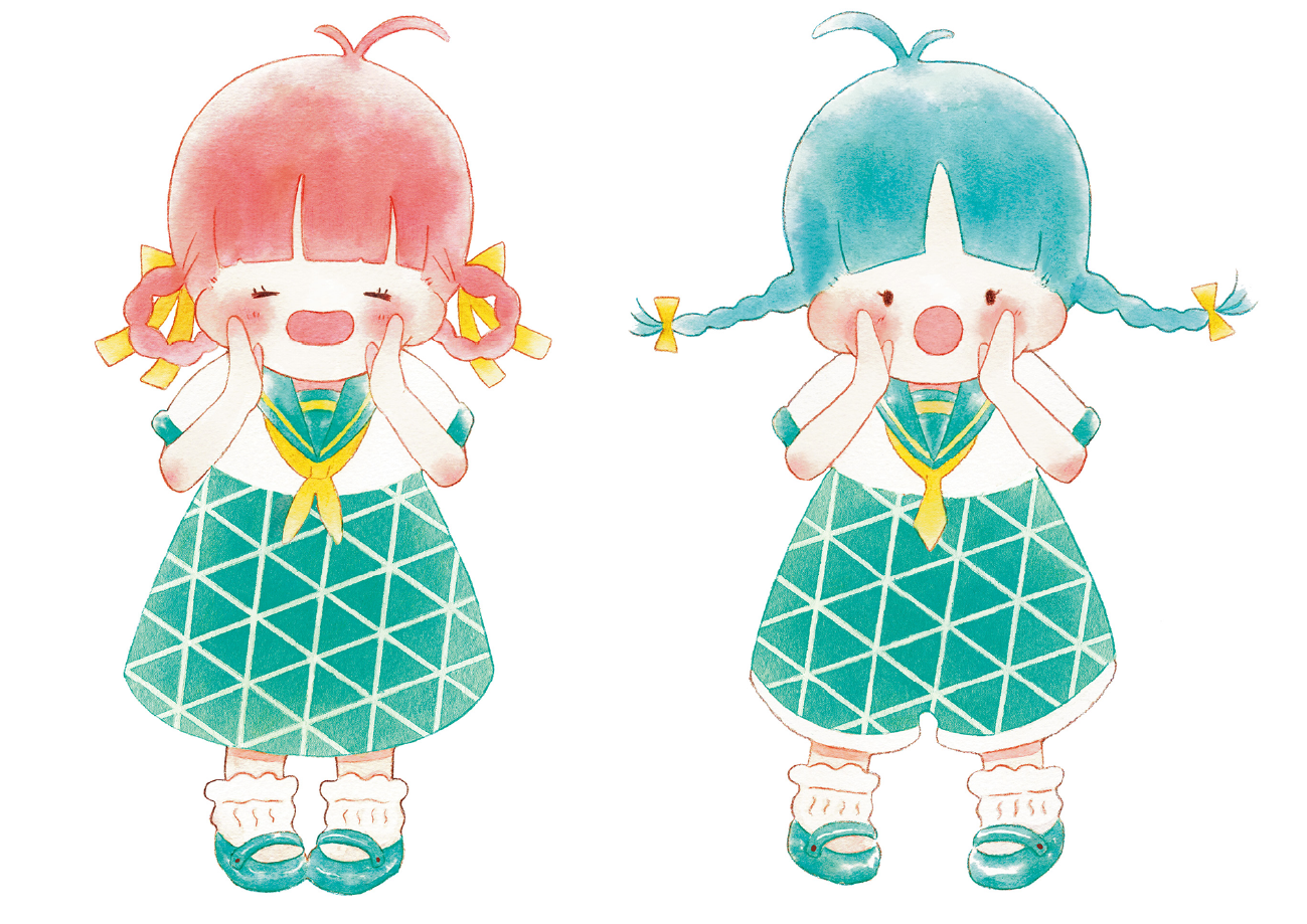 透明水彩を活用した素朴であたたかなイラストを描く「日向むぎ」によるキャラクターデザインを実施。2社の種苗会社が共同で開発された背景をもとに双子設定をつくり、素朴な愛らしさを感じる親しみやすいキャラクターに仕上げました。