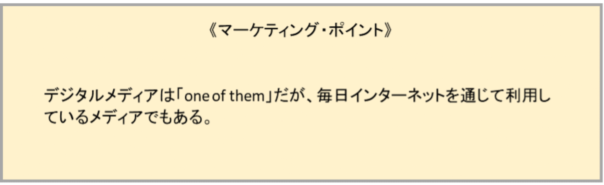 こういった生活が習慣化されているため、シニア層にとってのデジタルは「one of them(多くのメディアの中のひとつ)」とも言え、少し前までは必要性をあまり感じていないシニア世代もいました。