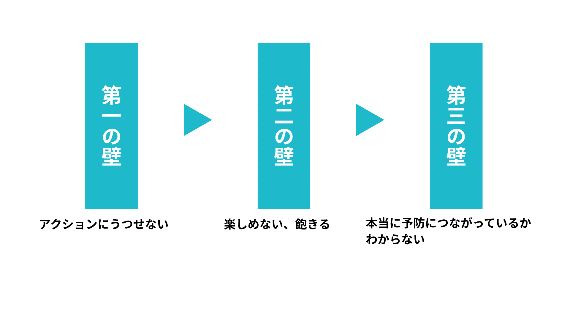 生活者にとって「予防医療」には、3つの「段階」と「壁」があると言われています。