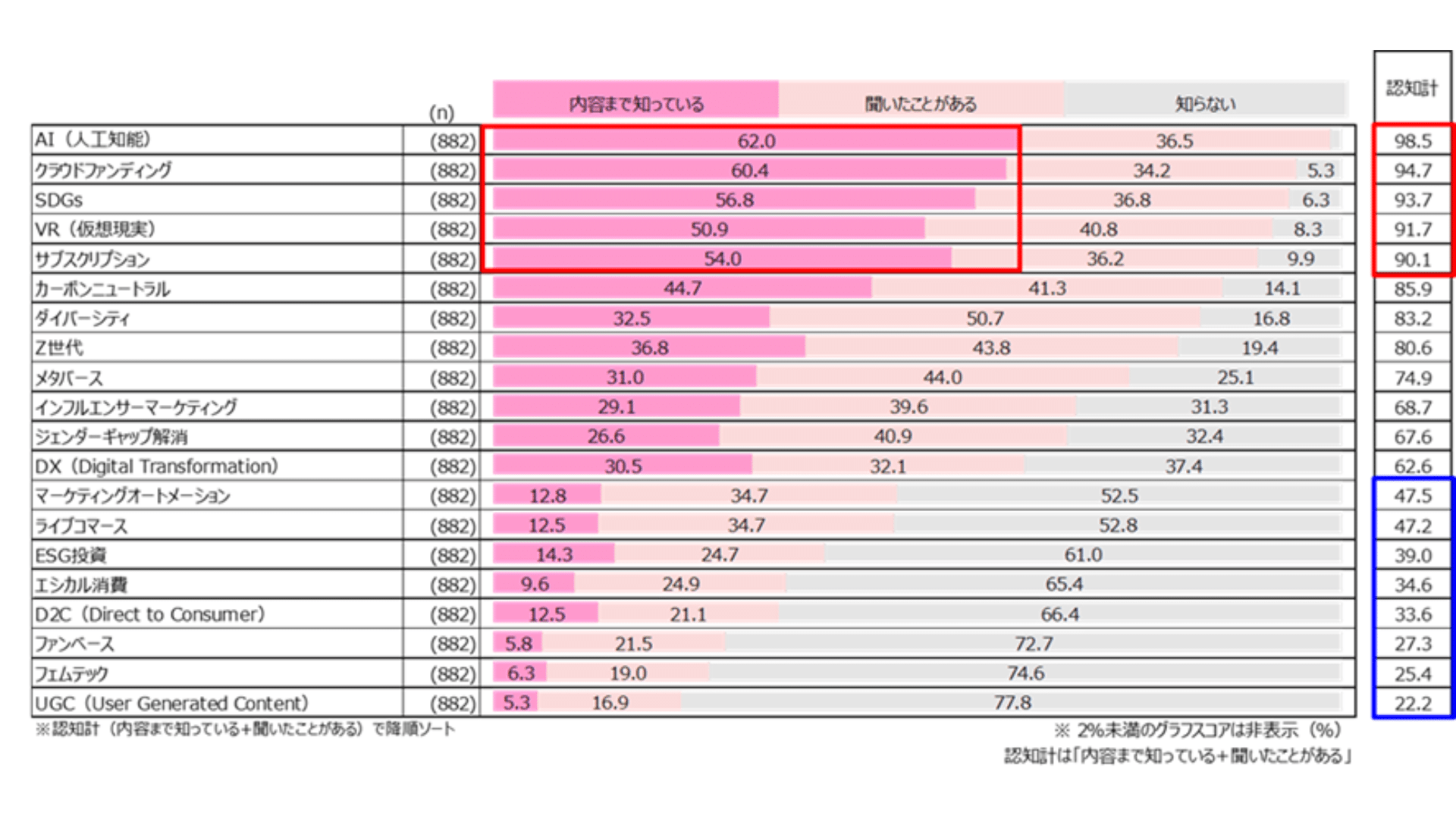 図表1)ビジネスキーワードの認知度(n=882)