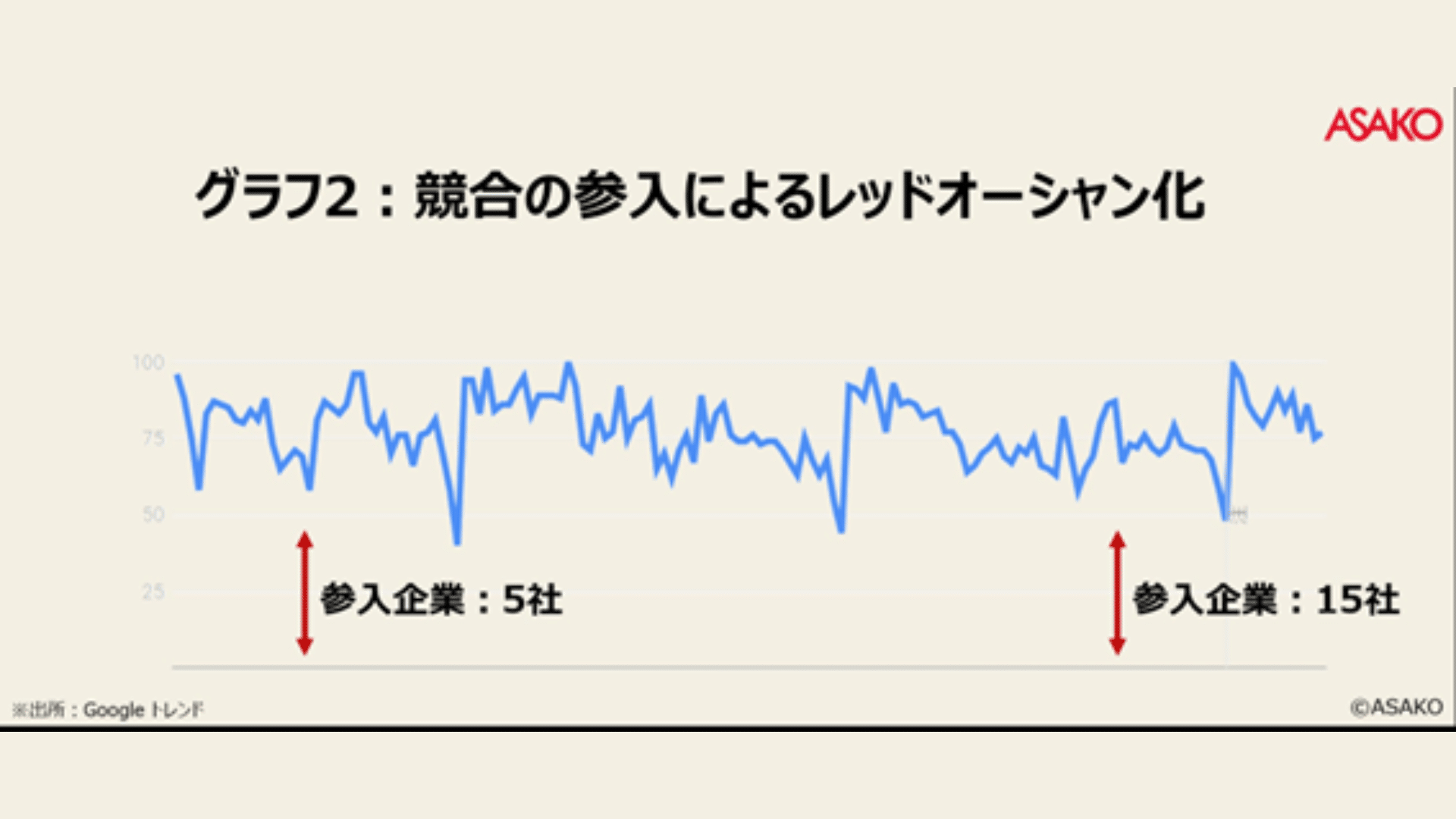 しかし「競合の参入による分け前の減少」あるいは「競合のブランド投資によるカテゴリー検索数の減少」という「大きな構図の変化」にさられると、小手先の地道なPDCAサイクルでは到底追い付かず、いたずらに現場の疲弊を招くことになります。