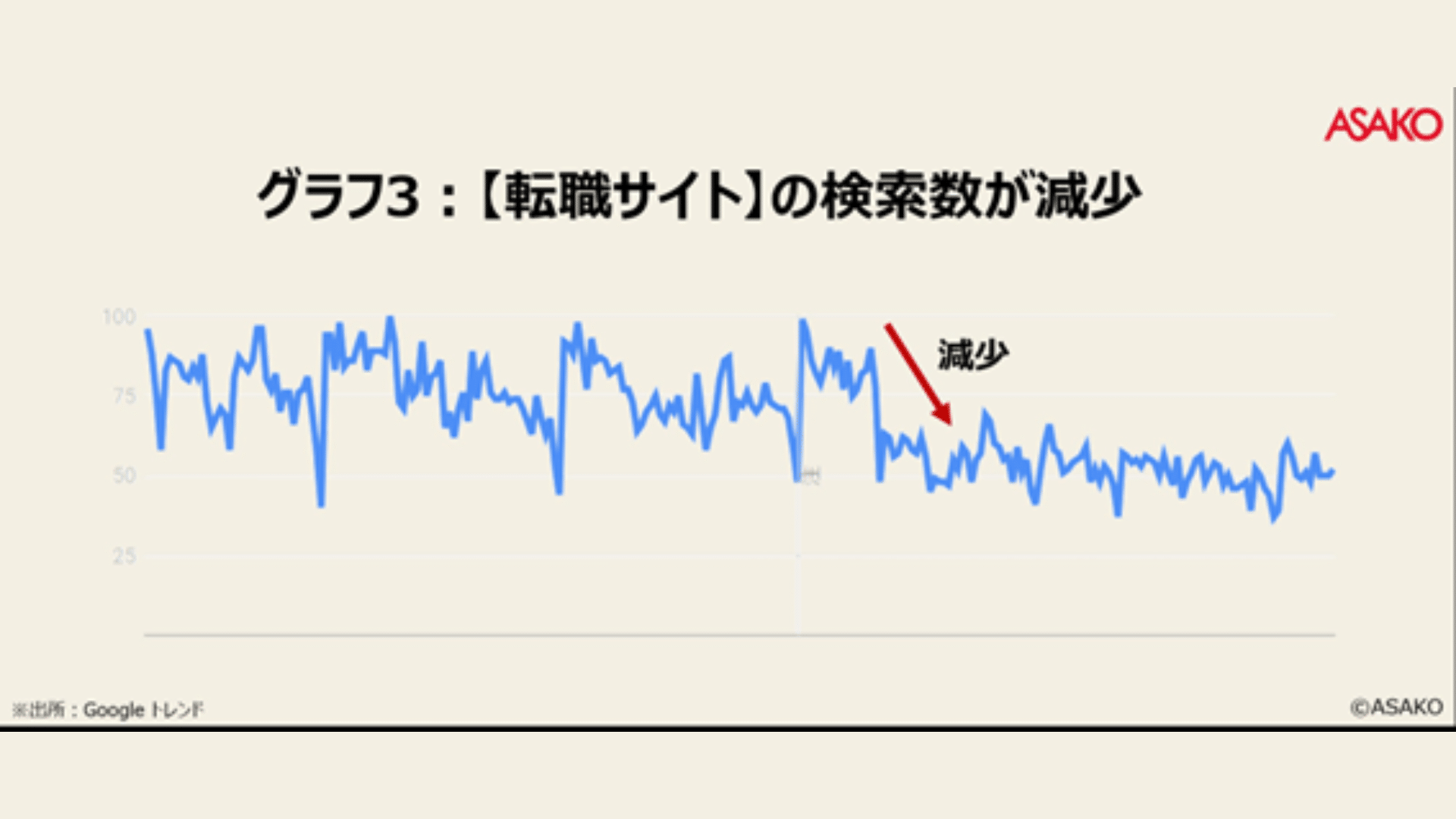 では、なぜ【転職サイト】の検索数が大きく減少したのでしょうか?次のグラフ4をご覧ください。