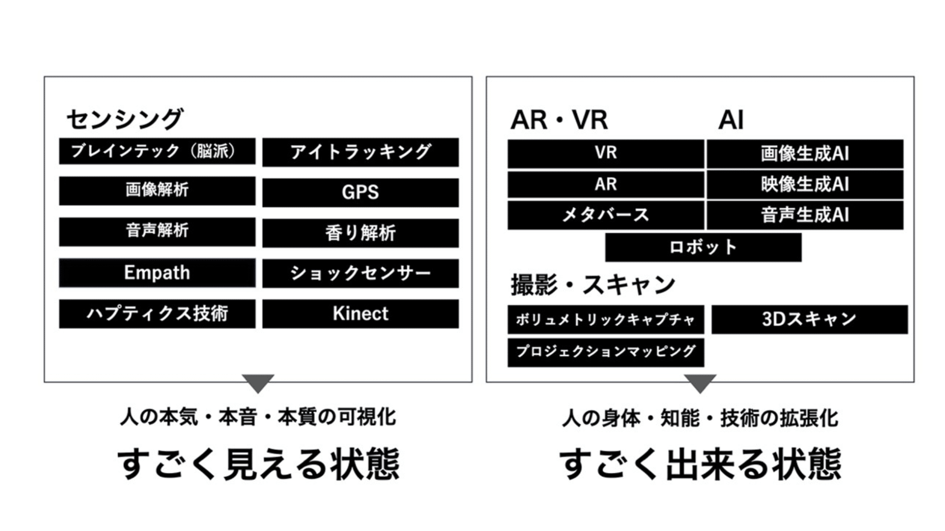 これらは、「人の身体・知能・技術の拡張化」つまり、「すごく出来る状態」を実現してくれます。