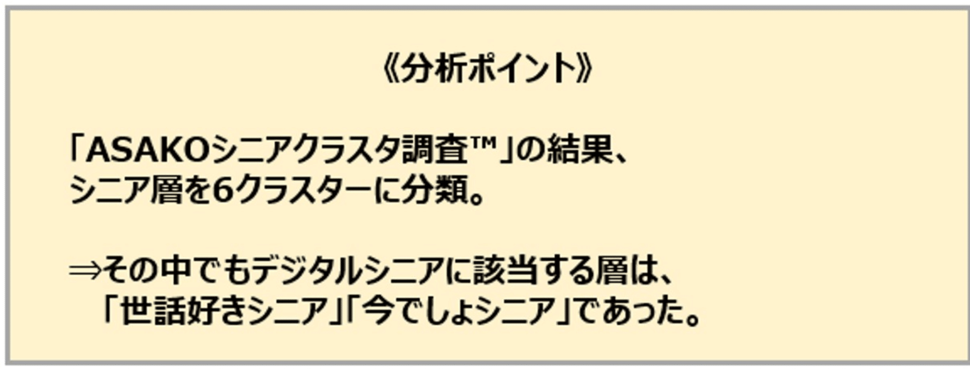 また、「ASAKOシニアクラスタ調査™」レポートは下記リンクから無料でダウンロード可能ですので、もしご興味がありましたらぜひお試しください。
