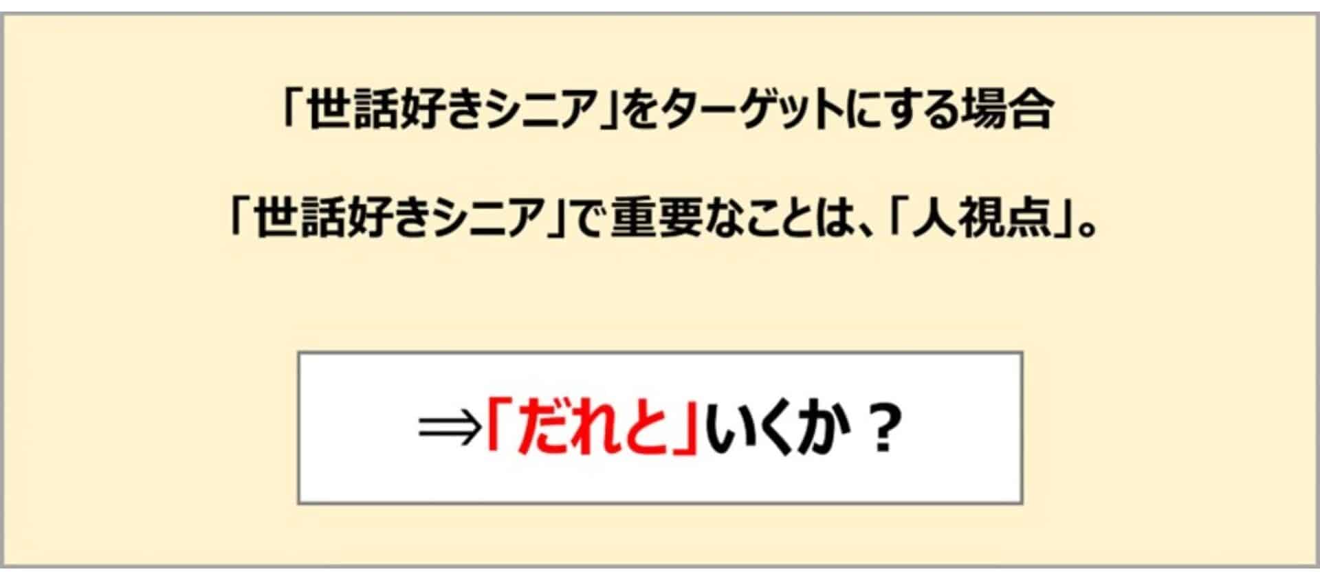 中野:ニーズからメディアまで一貫したコンテクストができましたね。また、少しマニアックなところが新たな需要にもつながりそうですね。続いて「世話好きシニア」のコンテクストはどうでしょうか。