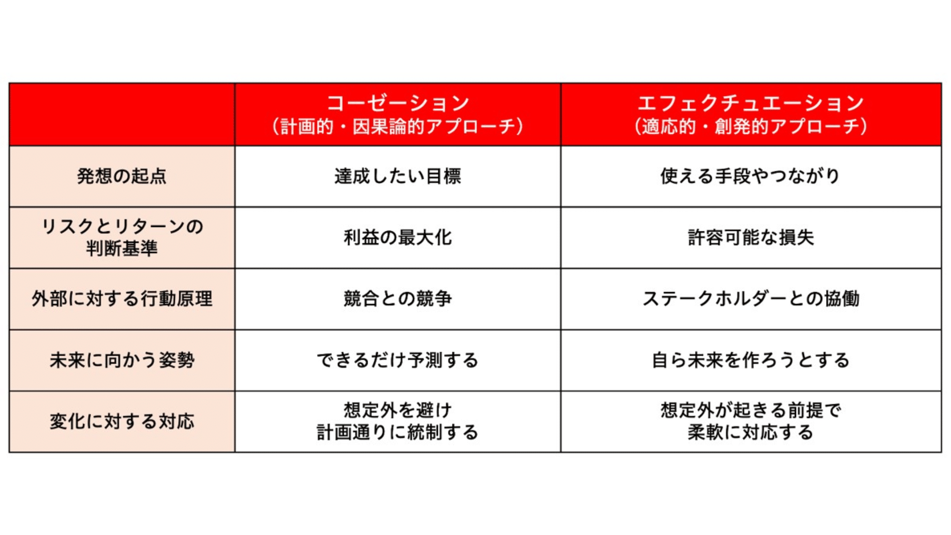 それは従来のビジネススクールで教えられていたアプローチ(コーゼーション)とは、かなり異なっていました。