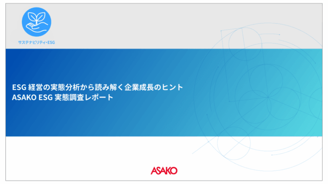 今回は企業のESG経営の実態についてデータを元にお話させていただきました。ASAKOでは、ESG経営を推進・検討している方向けに、ESG経営に関するお悩みをトータルサポートする「ASAKO ESG Solution」を展開しています。