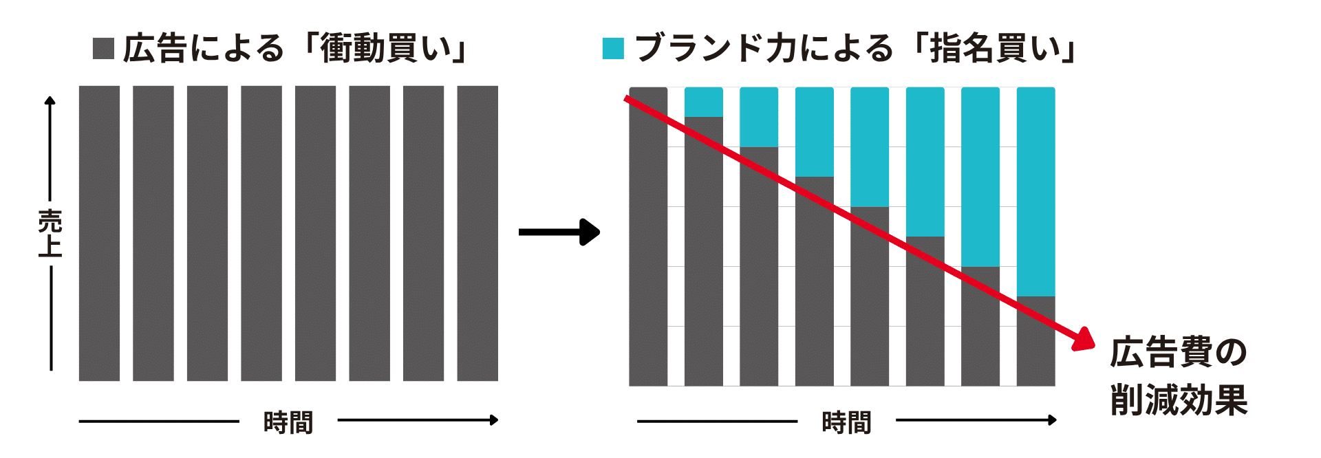 という「認識」や「感情移入」があって、初めて実現します。ここまで見てきたように、ブランディングとは単なる訴求や広告ではなく、