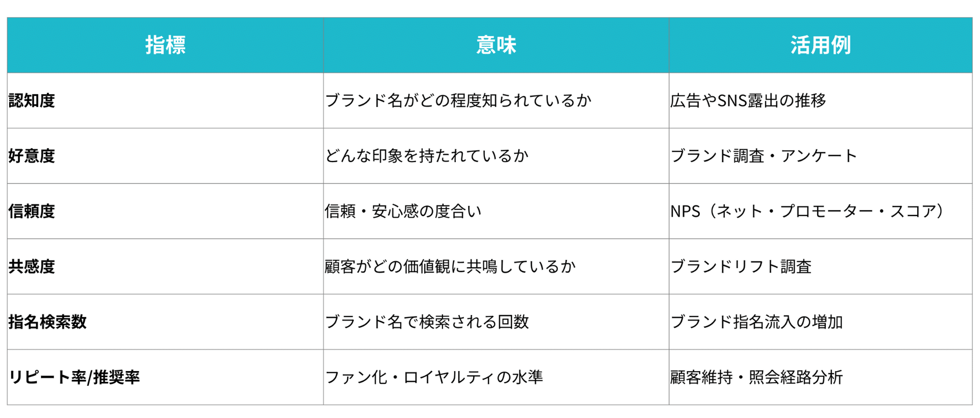 代表的なブランド指標