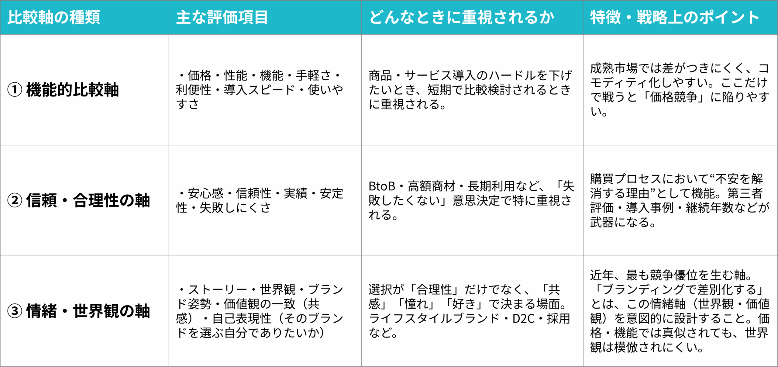 という3つの視点を、ブランド戦略に直結する形で整理します。