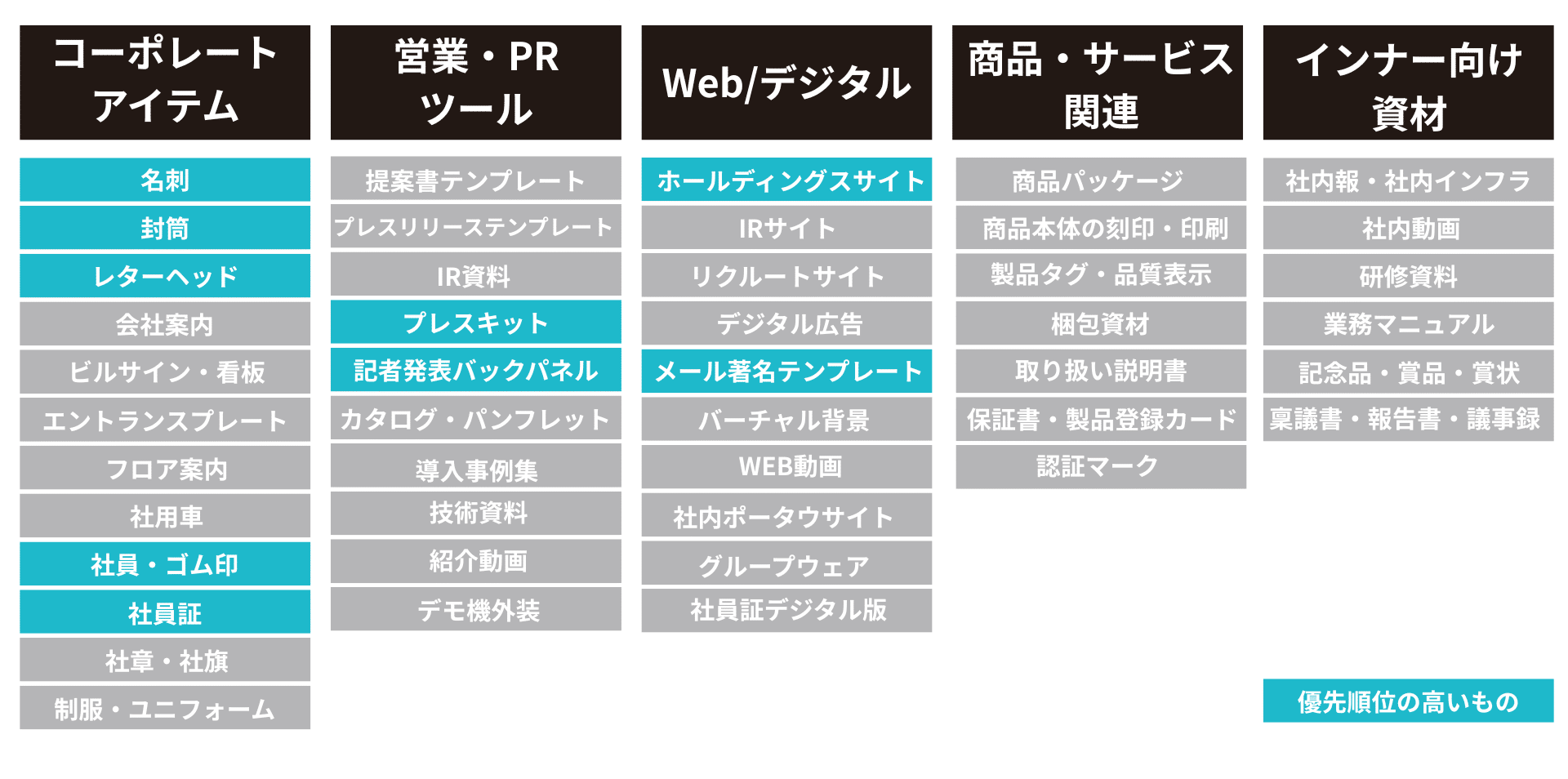❶ コーポレートアイテム ― 社会に示す顔を揃える