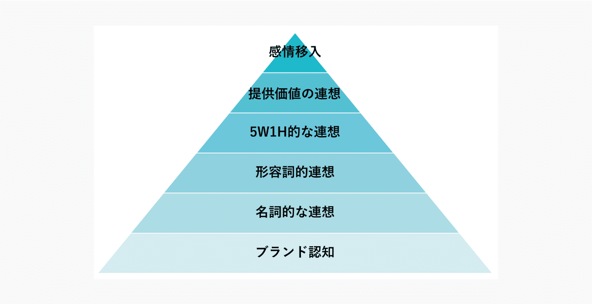 ブランド連想の6段階とは、顧客がブランドについて思い浮かべる内容を“深さ”と“質”で整理した指標です。