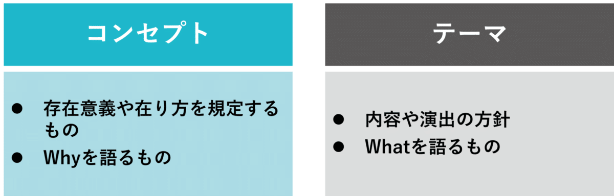 つまり、テーマ=What、コンセプト=Why の関係です。