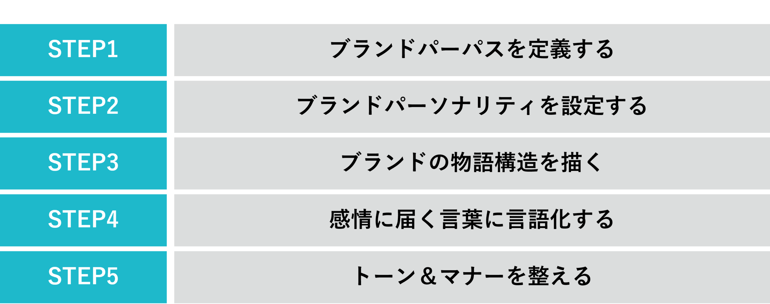 ここでは、ブランドの存在価値をストーリーへと昇華し、感情で伝わる言葉に仕上げるための5つのステップを紹介します。