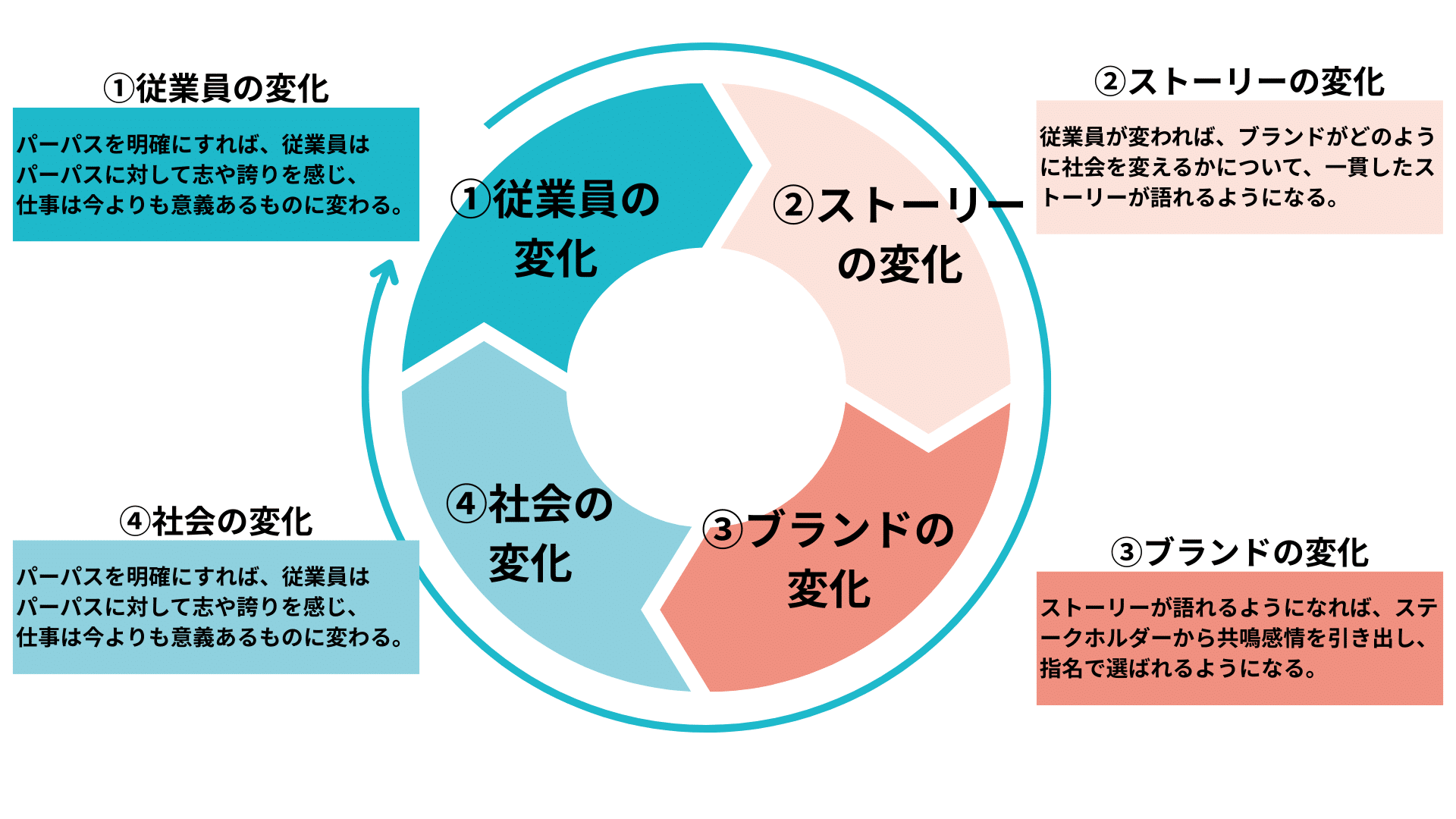 社員が変わることで、企業が「どのように社会を変えるのか」という一貫したストーリーを語れるようになる。