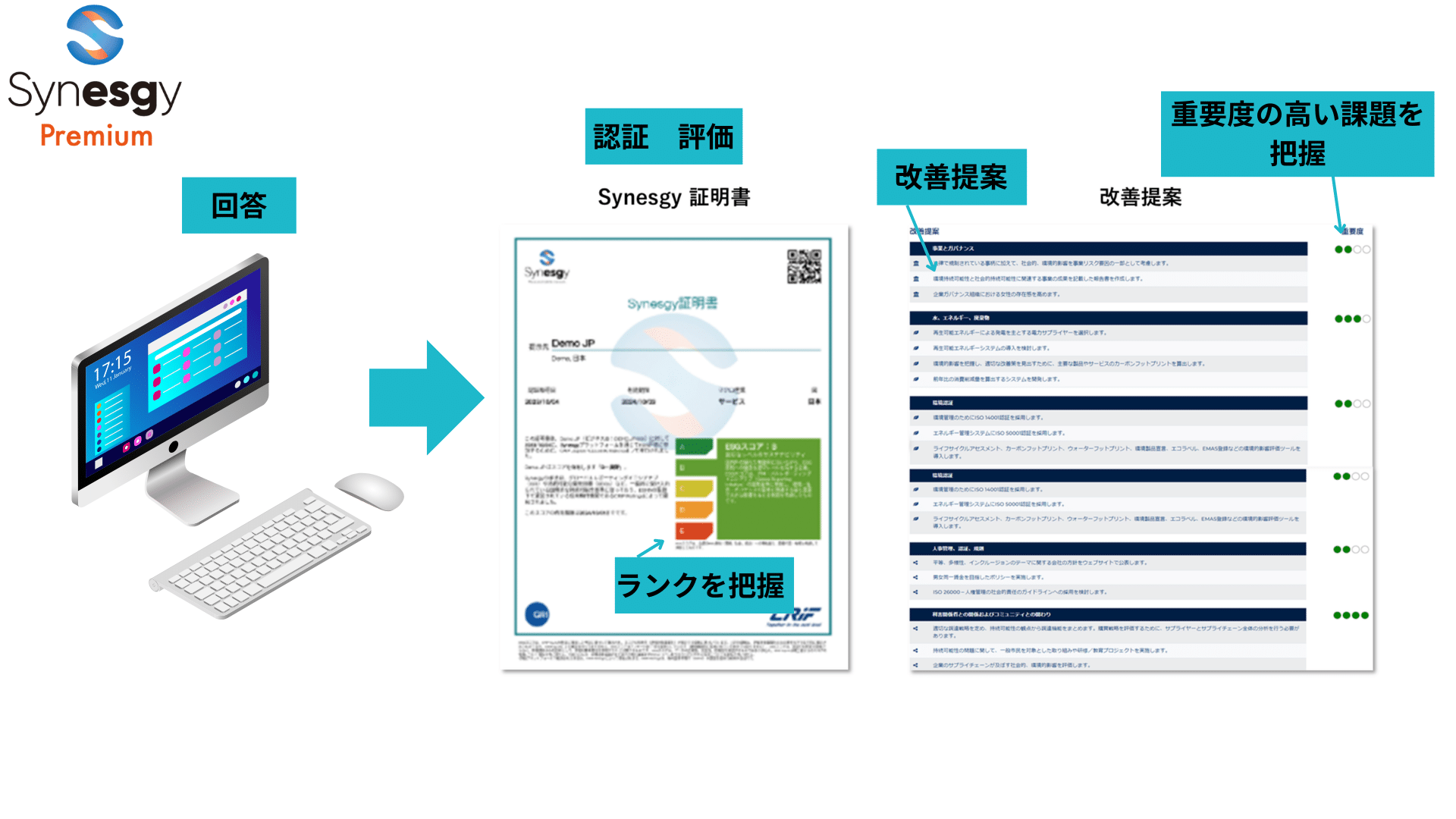 ESGとは単なるチェックシートではなく、企業の在り方を問い直すプロセスでもあります。その道筋を、手軽かつ確実にサポートするのが、私たちが提供する「シナジープレミアム」なのです。