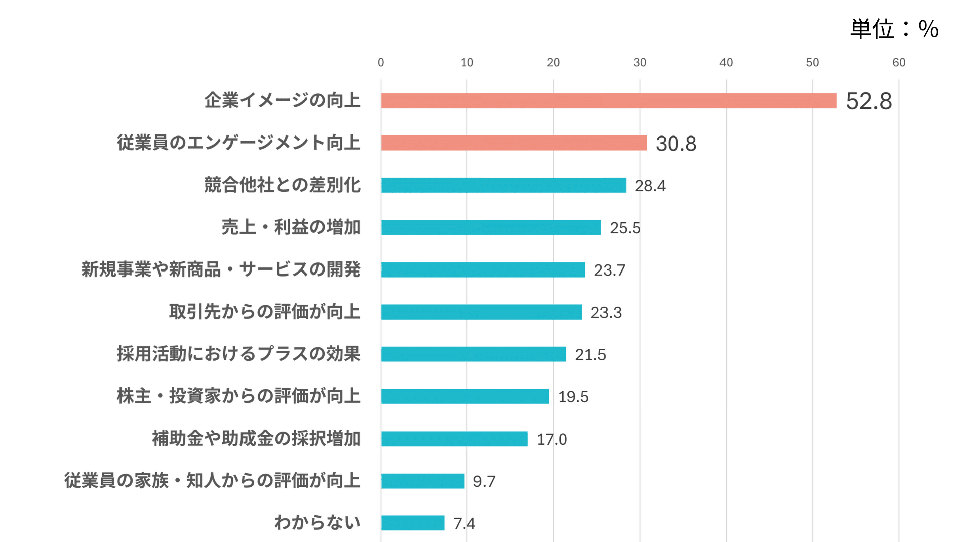 以上のように、ESGへの取り組みが、企業の信頼性やブランド価値を高める「企業イメージの向上」だけでなく、働きがいや誇りを支える「従業員のエンゲージメントの向上」にも直結していることがわかりました。