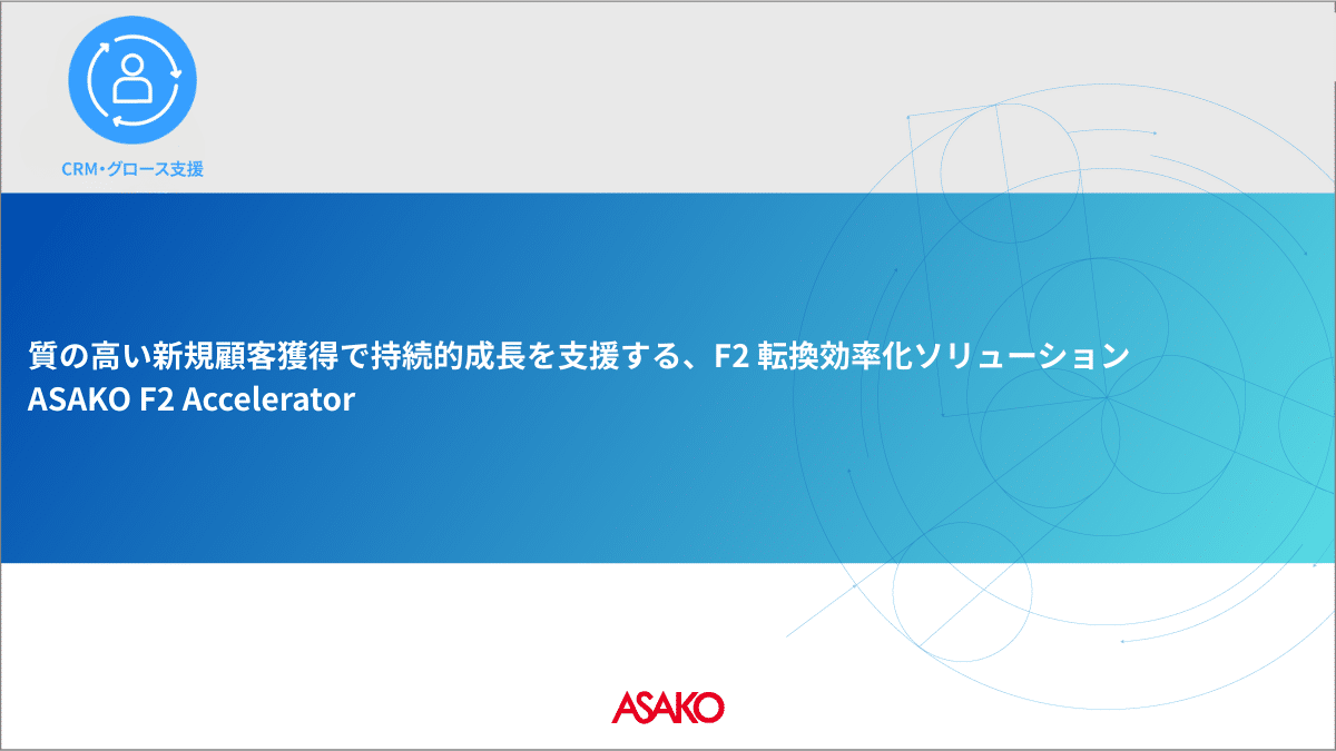 質の高い新規顧客獲得で持続的成長を支援する、F2 転換効率化ソリューション ASAKO F2 Accelerator
