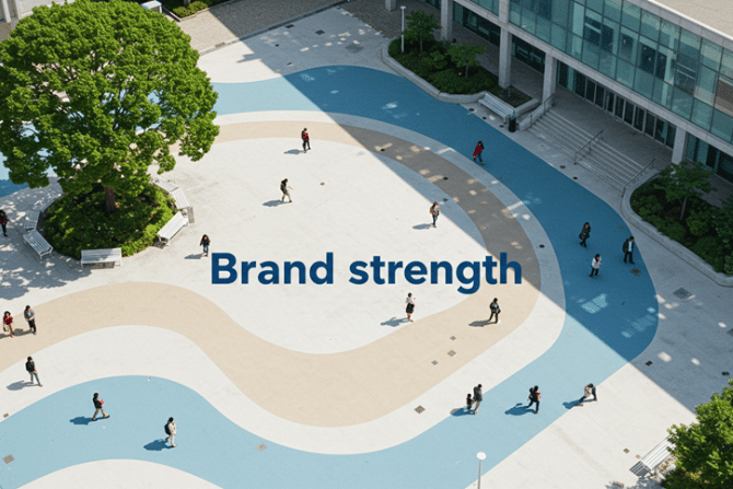 ブランド力は選ばれ理由の総合力(認知・品質・イメージ・ロイヤリティ)。価格回避・LTV・採用向上のためパーパス・体験・インナーで強化・測定し長期成長資産化。