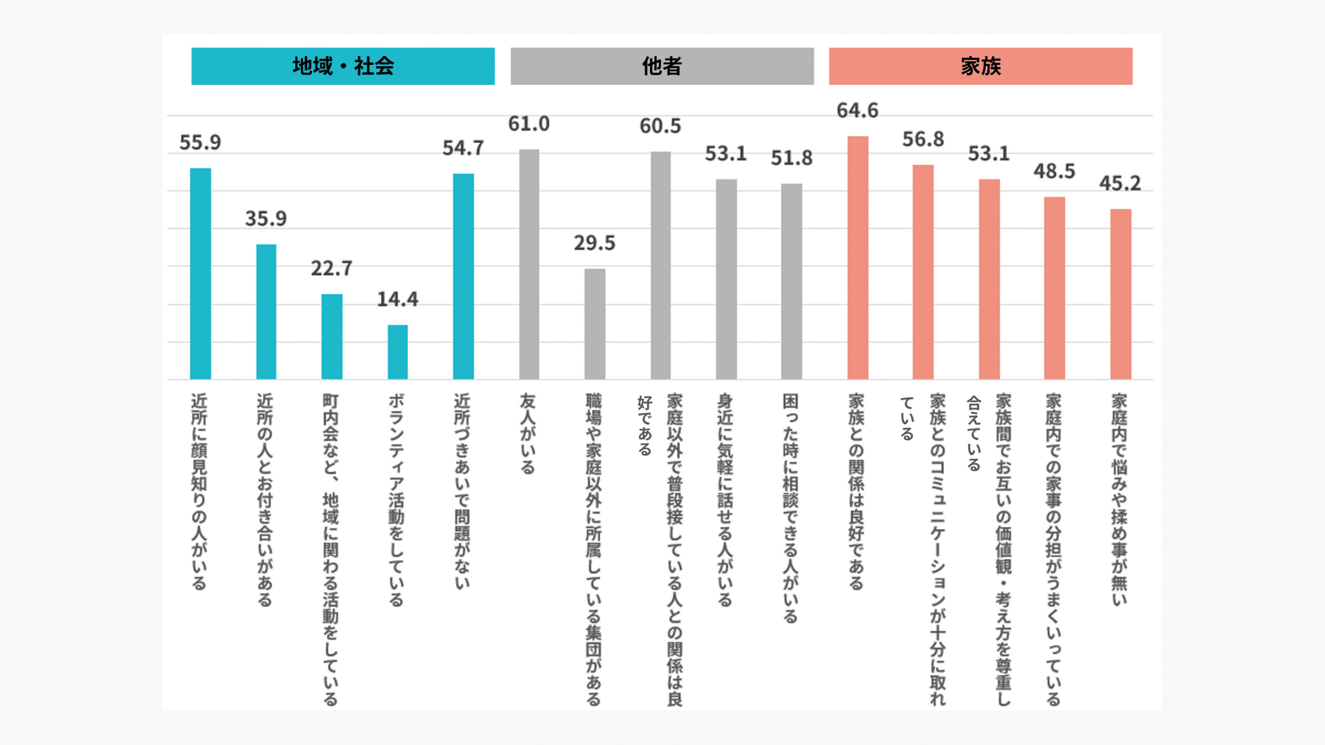 60のウェルビーイング指標™(地域・社会、他者、家族)