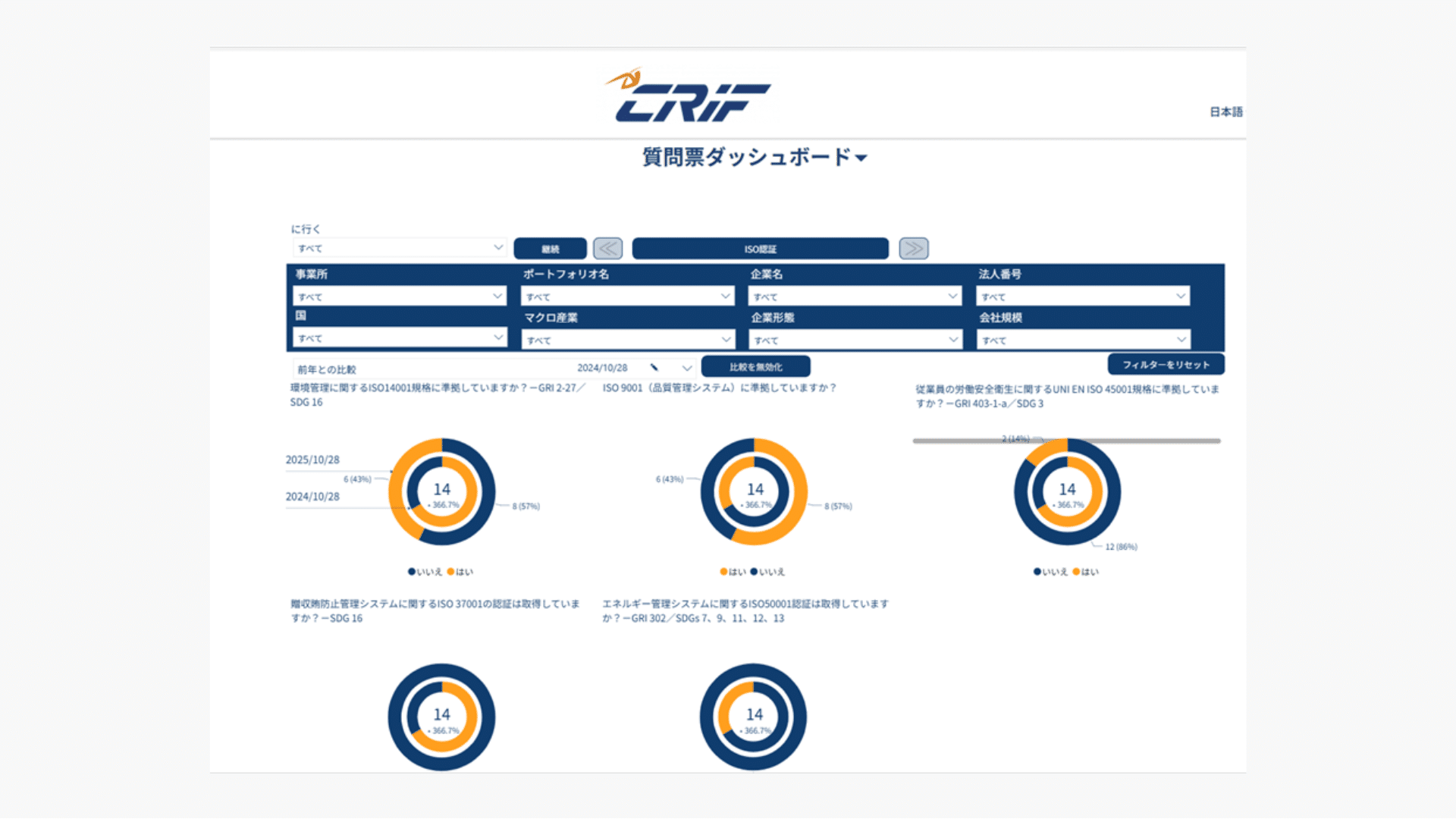 50~80問の質問は、GRIスタンダードやESRS、SDGsに準拠した設計となっています。業種特性を考慮しており、サプライヤーの事業内容に即した具体的な質問を行うことが可能です。これにより、画一的な評価では見落とされがちな各サプライヤー固有のESG課題を浮き彫りにします。また、自社の特性に合わせて質問をカスタマイズすることも可能です。