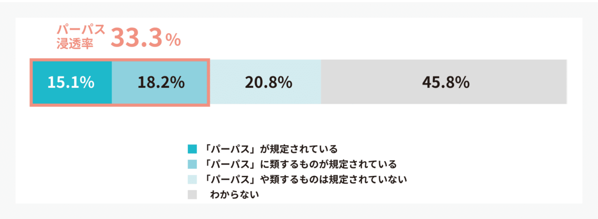 パーパス浸透率は、自社でパーパスが規定されていると認識している人の割合です。第3回調査では33.3%でした。業界平均との比較で客観的な評価が可能です。