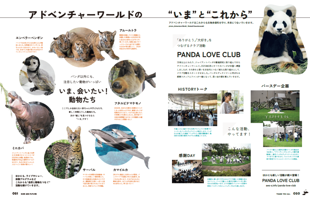 この節目を機に、『FRaU S-TRIP和歌山』プロジェクトチームが新たな企画を始動。講談社「FRaU」編集部の全面的な協力のもと、パンダたちの誕生から旅立ちまでの軌跡を写真とエピソードで綴った冊子『FRaU ADVENTURE WORLD 特別号』を制作しました。